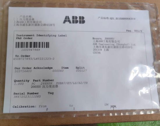 ABB 266HSHPSBA7-EYLSS2TB Pressure transmitter
