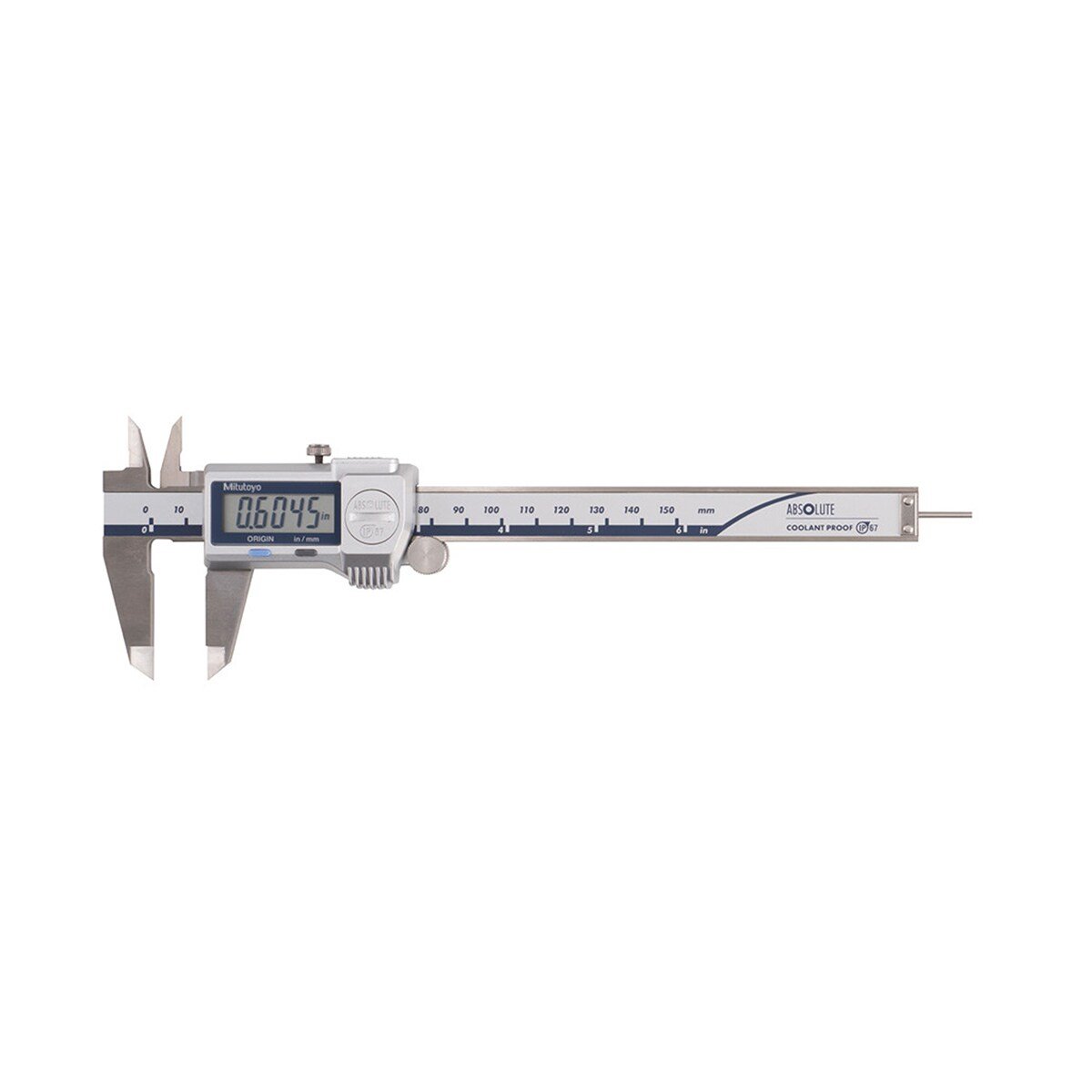 Mitutoyo 500-769-20 Absolute Coolant Proof Digimatic Caliper has a measuring range of 0-6 150mm with a 0005 001mm Resolution Includes SPC data output and a 075 Rod Depth Bar Features IP67 level of protection so it can be used in workshop conditions exposed to coolant, water, dust or oil Advanced design styling with incorporated absolute measurement system Features automatic power on off, thumb roller and supplied in a fitted plastic case Constructed from Stainless Steel It is easy-to-use and no need to wipe or clean the scale