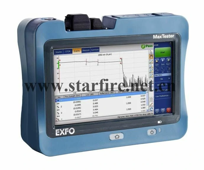 Model Number:EXFO MAX-730D-SM7-Oi Type:OTDR Brand Name:EXFO Place of Origin:Canada Use:FTTx/PON SM OTDR Warranty Time:1 Years Wavelength:1310 ± 20/1550 ± 20/1625 ± 10/1650 ± 15 Dynamic range:39/38/39/39 Event dead zone (m):0.5 Attenuation dead zone (m):2.2 Distance range (km):0.1 to 400 Size (H x W x D):166 mm x 200 mm x 68 mm Weight (with battery):1.5 kg