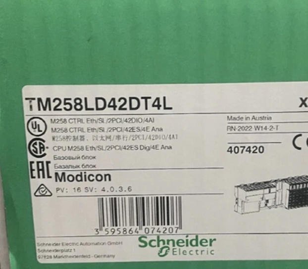 The Schneider TM258LD42DT4L is a high-performance programmable logic controller (PLC) module designed for industrial automation, offering robust control, flexibility, and seamless integration with Schneider Electric’s EcoStruxure architecture for enhanced efficiency and connectivity.